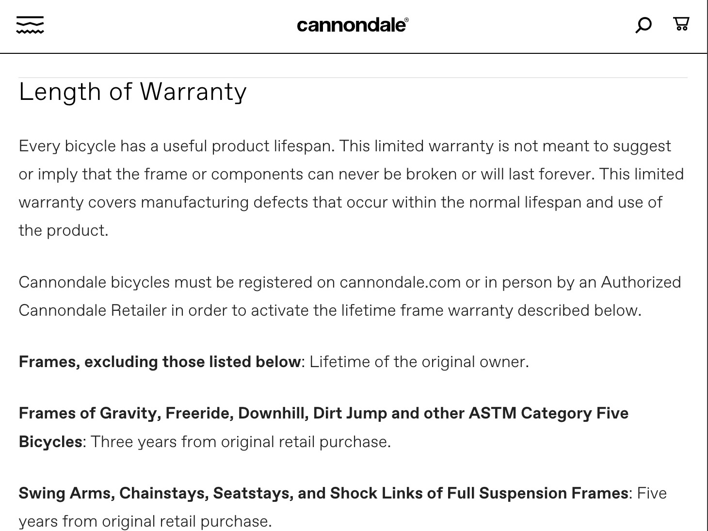 5. Cannondale: Lifetime Non-Transferable Frame Warranty, Transferable Components Warranty