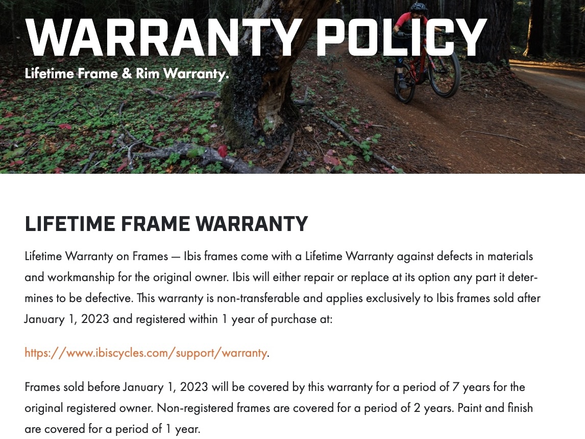 4. Ibis Cycles: Lifetime Non-Transferable Warranty
