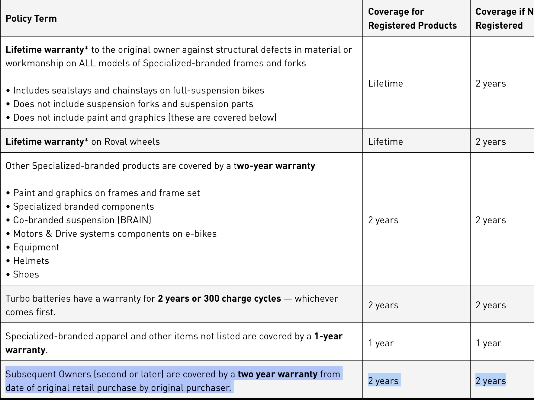 2. Specialized: 2-Year Transferable Warranty